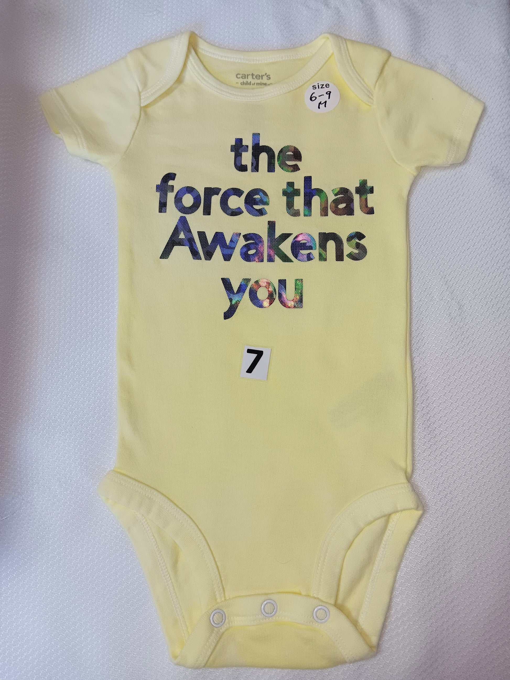 Baby onesies, colored and vinyl phrase put on.